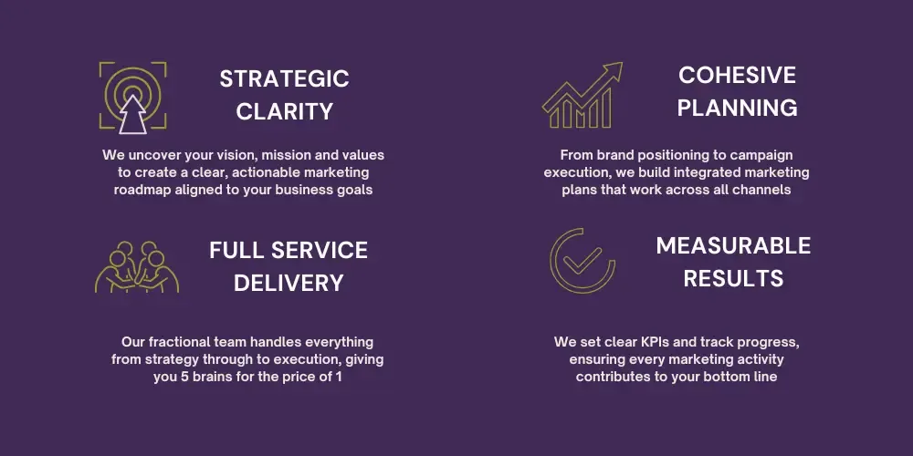 You get access to our full fractional team: strategists, project managers, copywriters, digital and social media experts. We become an extension of business, working alongside you to deliver campaigns that get noticed and drive results.